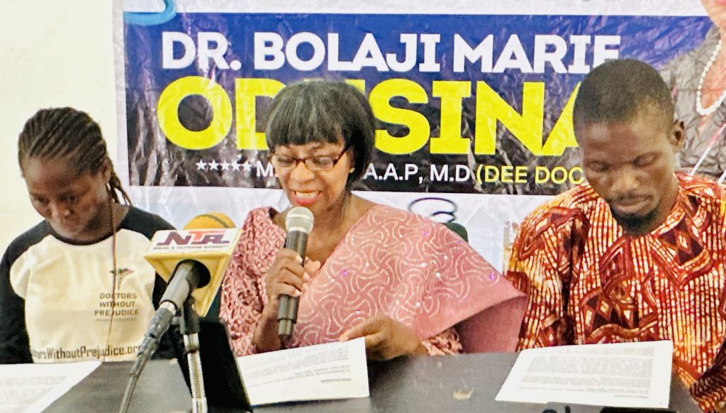 Through her initiative, Doctors Without Prejudice, she said she has led missions delivering healthcare services to rural populations in areas such as Odogbolu, Abeokuta North and Ijebu-Igbo.